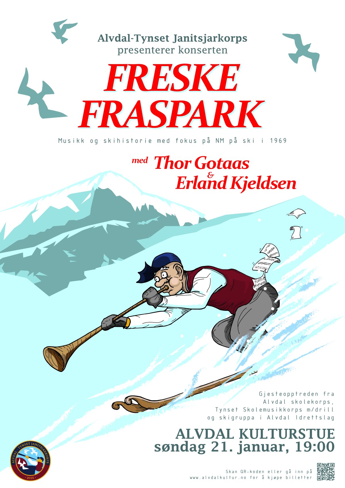 Alvdal-Tynset Janitsjarkorps presenterer konserten "Freske Fraspark" med Thor Gotaas og Erland Kjeldsen. Konserten vil være en sammensmeltning av musikk og skihistorie, med spesiell vekt på NM på ski i 1969.